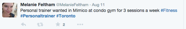 How do you search for local conversations about personal training? Add the hashtag to where your location is. Below we have some screen shots of the same personal trainer search with the location hashtag of #Toronto. Simply insert your location when you do your own search. You can even go as narrow as specific neighbourhoods.